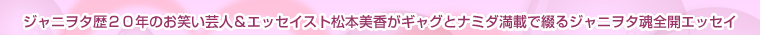 誰もがハマる雑誌キリ抜き地獄から海外遠征、ジャニヲタVSモーヲタの奇跡の合コンの一部始終に至るまでオタク女子の生態について、自身ジャニヲタ歴20年のお笑い芸人&エッセイスト松本美香がギャグとナミダ満載で綴るジャニヲタ魂全開エッセイ。ここにあるのは、「ジャニーズへの愛」ただ一つ! |